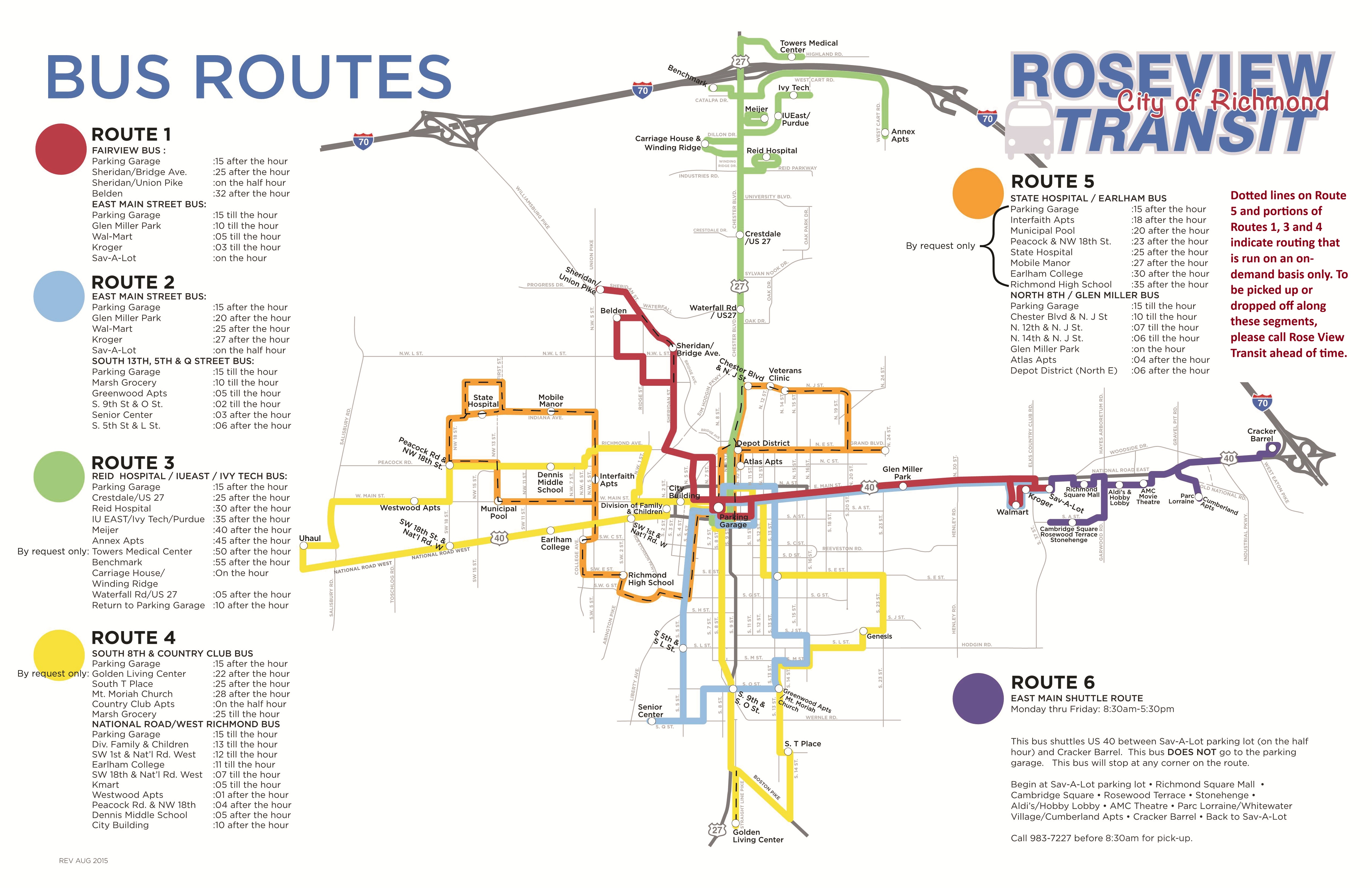 Roseview Transit is a request-based bus system with six routes. This means that you can wave down a bus for a pick up or request a drop off anywhere along a route. Each bus is equipped with wheelchair lift and bicycle rack.